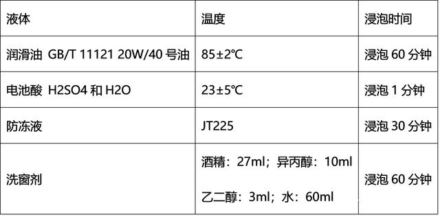应采用有可能暴露在如下液体环境的连接器作为试样,在进行公母连接器插合,并接有合适的高压导线后,按要求时间浸泡在如下液体中。